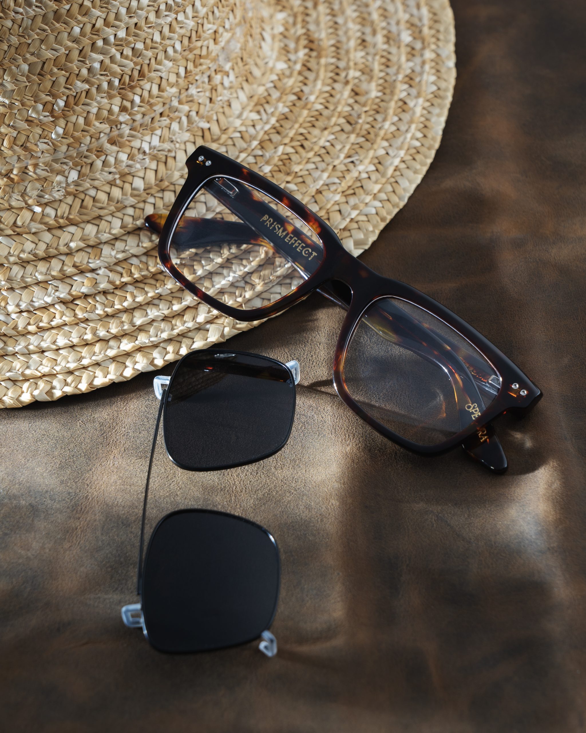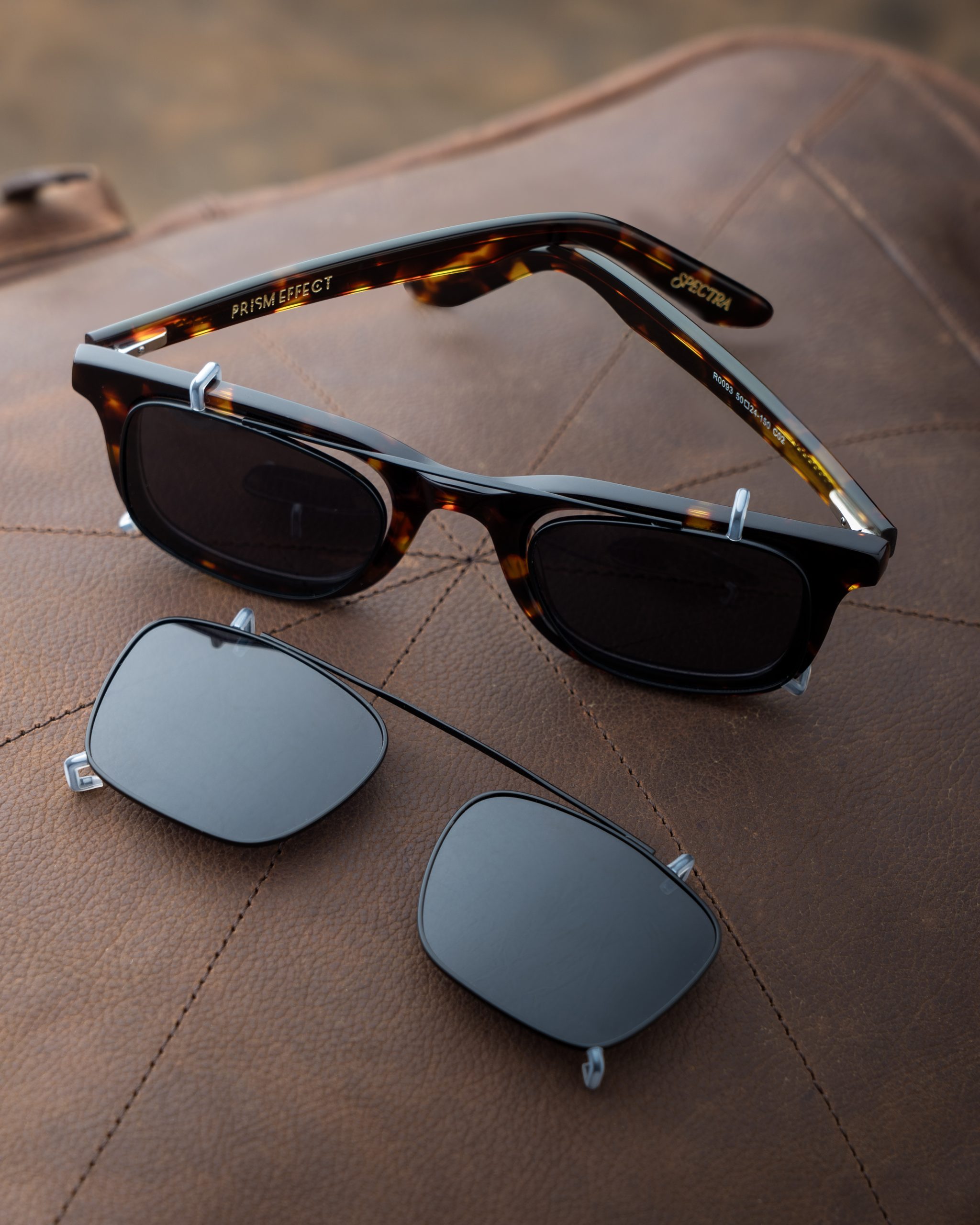Product Type: Prescription eyeglasses with clip-on sunglasses.